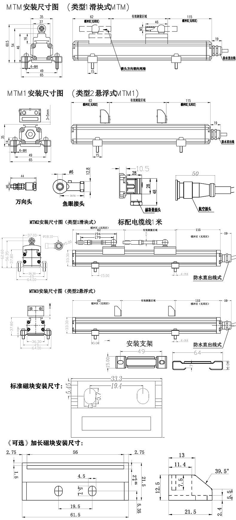 MTM2/MTM3滑块式磁致����� �������Ƴ������������ �������Ƴ����������� �������Ƴ������������ �������Ƴ�������伸缩传感器选型指导: