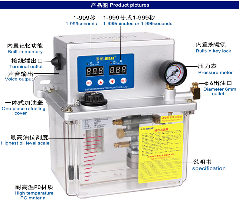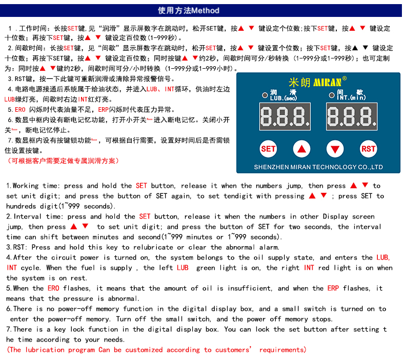 稀油油脂电动润滑油泵微电脑型主要应用于:注����� �������Ƴ������������ �������Ƴ������������ �������Ƴ������������ �������Ƴ�������塑机、压铸机、橡胶机、数控机床等自动化����� �������Ƴ������������ �������Ƴ������������ �������Ƴ������������ �������Ƴ�������设备集中润滑系统,供油和间����� �������Ƴ������������ �������Ƴ����������� �������Ƴ������������ �������Ƴ�������歇时间同主机电脑控制设定����� �������Ƴ����������� �������Ƴ������������ �������Ƴ������������ �������Ƴ�������。此款产品为4升220V稀油油脂电动润滑油泵微电脑型����� �������Ƴ������������ �������Ƴ������������ �������Ƴ������������ �������Ƴ�������,本公司提供配套的油路配件以供选择!