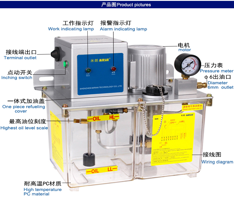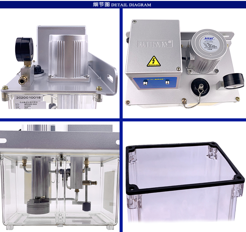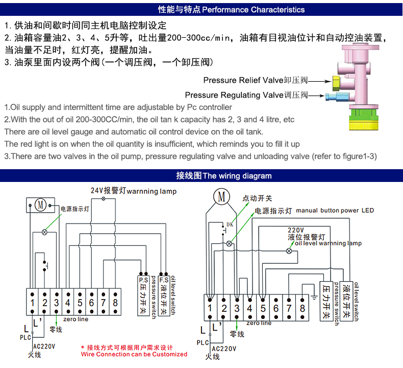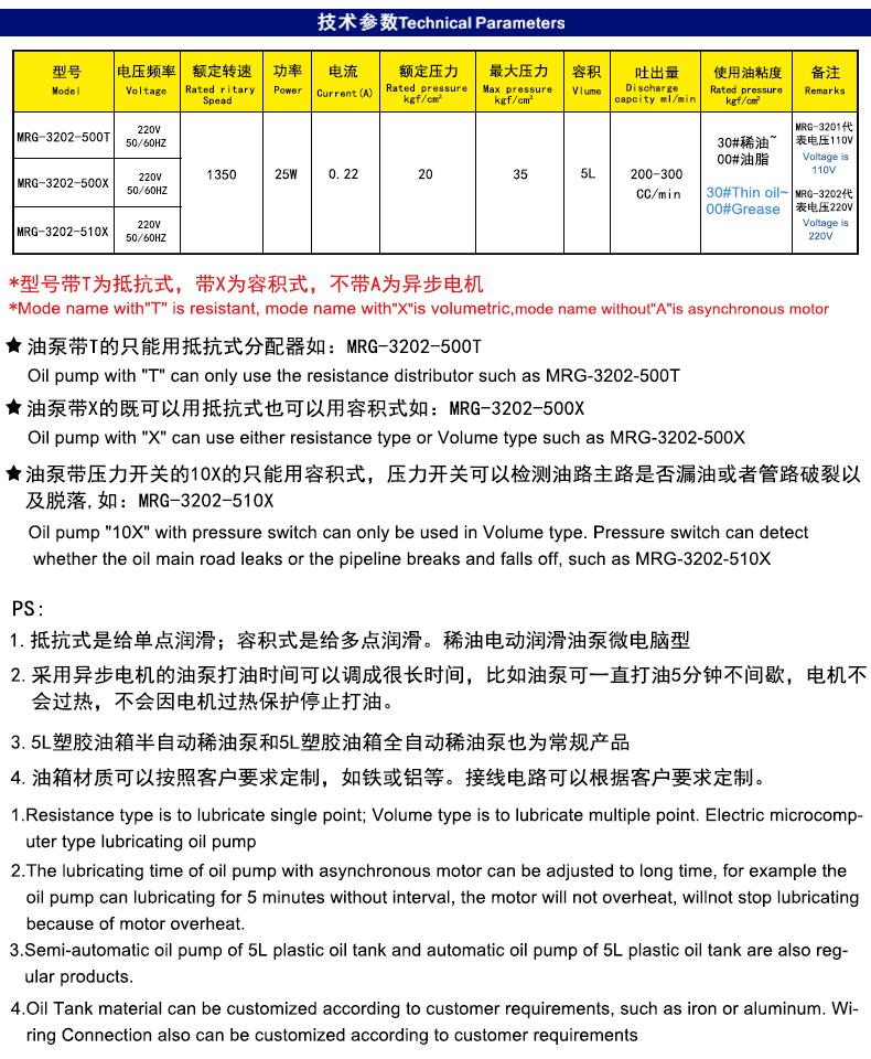 稀油油脂一体润滑油泵PLC型特点:流量������ �������Ƴ������������ �������Ƴ������������ �������Ƴ������������ �������Ƴ����������� �������Ƴ����� �������Ƴ������������ �������Ƴ������������ �������Ƴ������������ �������Ƴ�������������200-300ml����� �������Ƴ������������ �������Ƴ������������ �������Ƴ������������ �������Ƴ�������/min,额定注油压力20-35K����� �������Ƴ������������ �������Ƴ������������ �������Ƴ������������ �������Ƴ�������gf/cm,操作方式微电脑,����� �������Ƴ����������� �������Ƴ������������ �������Ƴ������������ �������Ƴ�������电机电压220VAC,电机功率25����� �������Ƴ������������ �������Ƴ������������ �������Ƴ������������ �������Ƴ������W,润滑油粘度范围30#~0����� �������Ƴ����������� �������Ƴ������������ �������Ƴ������������ �������Ƴ�������0#,油箱容积5L,出油口管����� �������Ƴ����������� �������Ƴ����������� �������Ƴ������������ �������Ƴ�������道Φ6mm,适用系统抵抗式/容积式。����� �������Ƴ������������ �������Ƴ������������ �������Ƴ������������ �������Ƴ�������