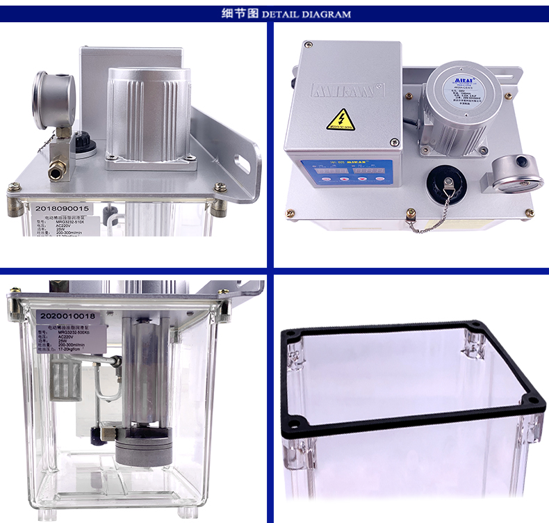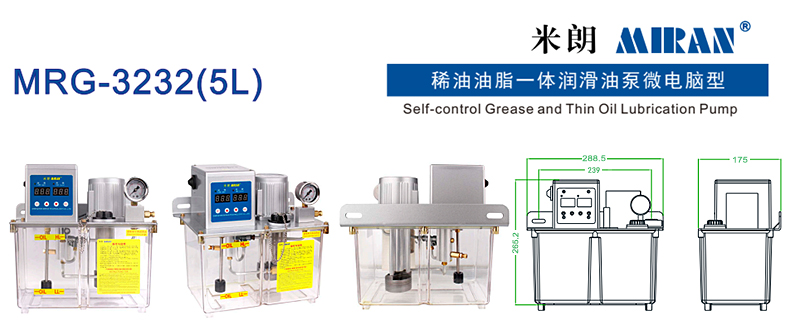 电动稀油油脂一体润滑油泵特点:����� �������Ƴ������������ �������Ƴ������������ �������Ƴ������������ �������Ƴ�������流量200-300ml/min,额定注油压力2����� �������Ƴ����������� �������Ƴ������������ �������Ƴ������������ �������Ƴ�������0-35Kgf/cm,操作方式微电����� �������Ƴ����������� �������Ƴ������������ �������Ƴ������������ �������Ƴ�������脑,电机电压220VAC,电机功率25W,润滑����� �������Ƴ������������ �������Ƴ������������ �������Ƴ������������ �������Ƴ�������油粘度范围30#~00#,油箱容积5L,出油口����� �������Ƴ������������ �������Ƴ����������� �������Ƴ������������ �������Ƴ�������管道Φ6mm,适用系统抵抗式/容积式。