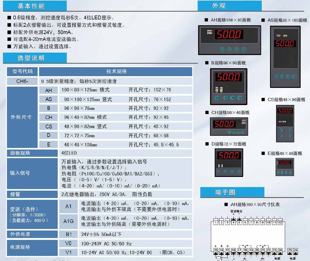 0.5级精度,测控速度每秒5次。4位LE����� �������Ƴ����������� �������Ƴ������������ �������Ƴ������������ �������Ƴ�������D显示。标配2点报警输出。可设置报警方式和报警灵����� �������Ƴ������������ �������Ƴ������������ �������Ƴ������������ �������Ƴ�������敏度。标配外供电源24V,50mA。可����� �������Ƴ������������ �������Ƴ������������ �������Ƴ������������ �������Ƴ�������选配4-20mA����� �������Ƴ������� �������Ƴ������������ �������Ƴ������������ �������Ƴ������������ �������Ƴ�����������电流变送输出。万能输入,通过设置选����� �������Ƴ������������ �������Ƴ������������ �������Ƴ������������ �������Ƴ�������择。