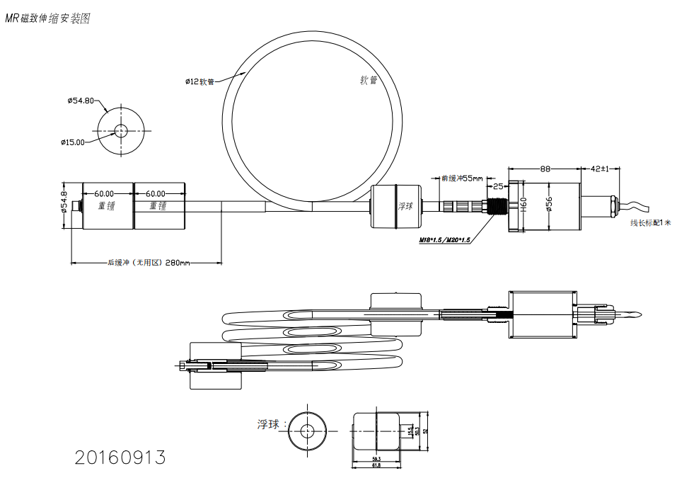 MR软缆式磁致伸缩液位传����� �������Ƴ������������ �������Ƴ������������ �������Ƴ������������ �������Ƴ������感器尺寸安装图: