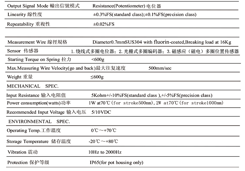 MPS系列新款微型拉绳位移传感器的参数说����� �������Ƴ������������ �������Ƴ������������ �������Ƴ������������ �������Ƴ�������明: