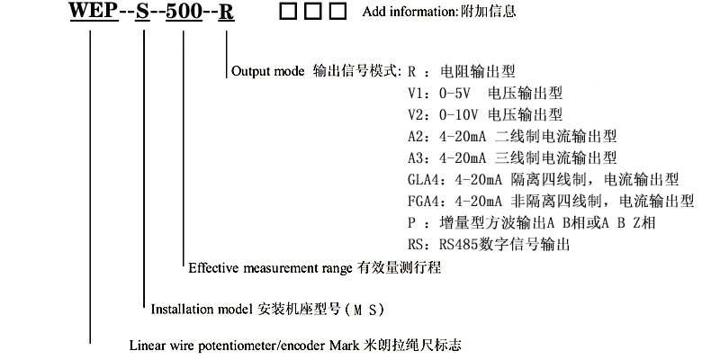 WEP-S拉线位移传感器选型指导: