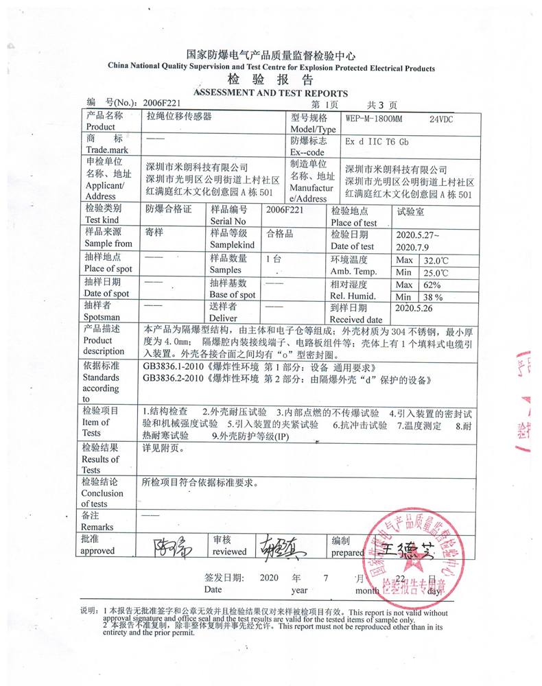 • 产品名称:拉绳/拉线式位移传感器检����� �������Ƴ������������ �������Ƴ������������ �������Ƴ������������ �������Ƴ������测报告