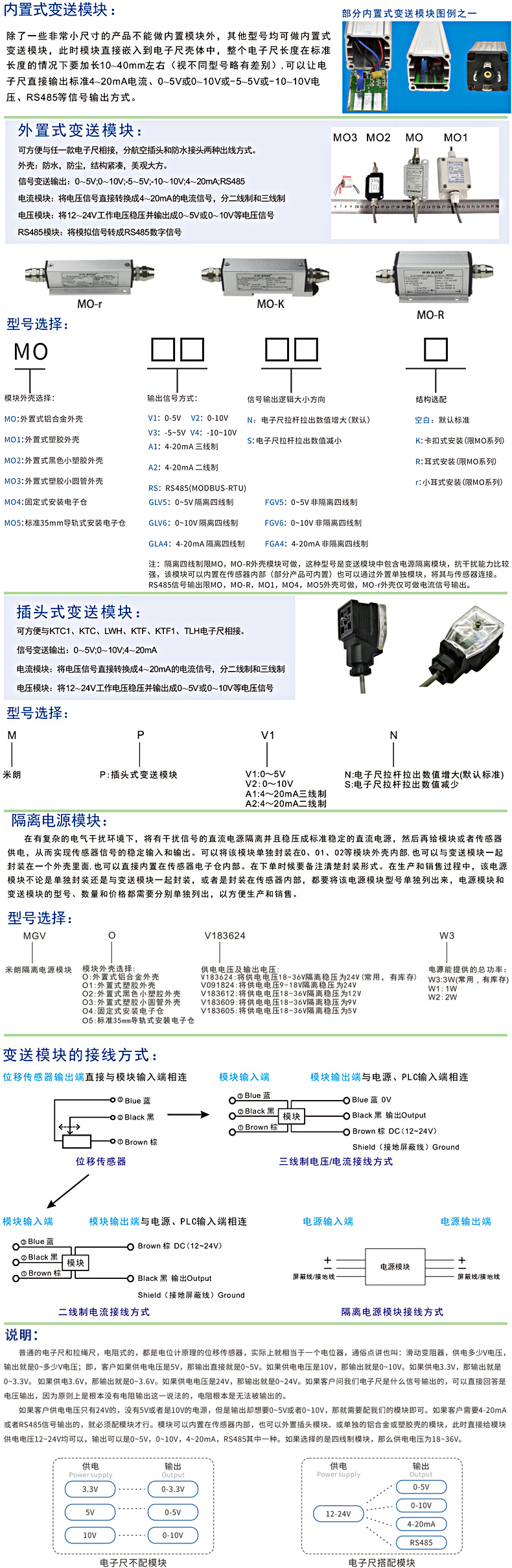 如果供电电压只有24V的,没有5V或者是10V的电源,但是输出却想要0-5V或者0-10V,那就需要配我们的模块即����� �������Ƴ������������ �������Ƴ������������ �������Ƴ������������ �������Ƴ�������可。如果需要4-20MA或者RS485输出的,就必须配模块才行。模块可以内置在传感器内����� �������Ƴ������������ �������Ƴ������������ �������Ƴ������������ �������Ƴ�������部,也可以外置插头模块(限模����� �������Ƴ������������ �������Ƴ������������ �������Ƴ������������ �������Ƴ�������拟量信号输出)、或单独的铝合金或塑胶����� �������Ƴ������������ �������Ƴ������������ �������Ƴ������������ �������Ƴ�������壳的模块。
