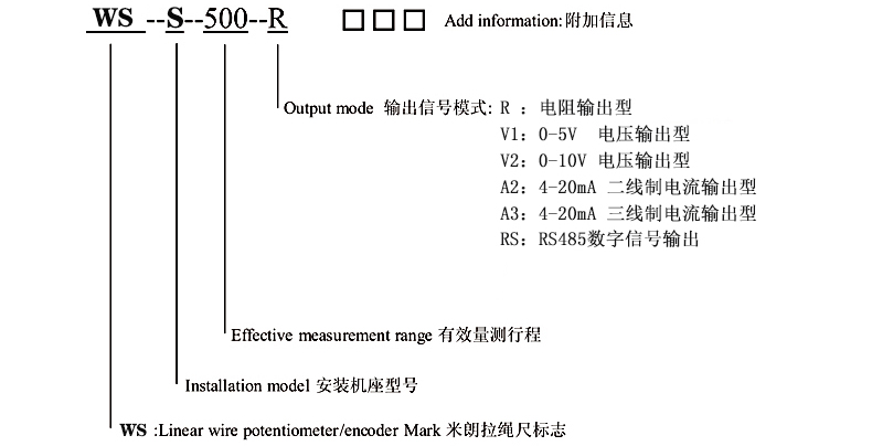 WS-S拉线位移传感器选型指导: