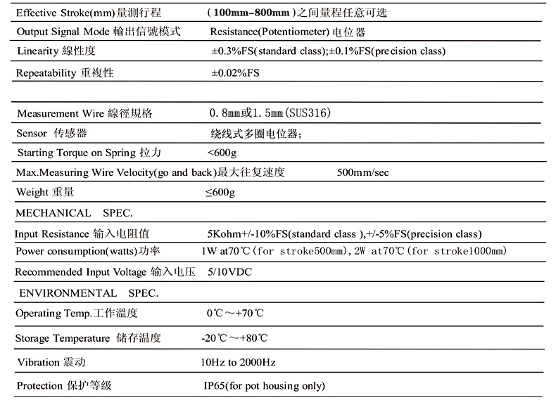 WS-S拉绳拉线式位移传感器及����� �������Ƴ������������ �������Ƴ����������� �������Ƴ������������ �������Ƴ������其特点:全防护外壳为铝合金材质,����� �������Ƴ������������ �������Ƴ������������ �������Ƴ������������ �������Ƴ�������更加美观大方,拉绳可倾斜45°往外拉出,且不影响线性精度及其重复性。