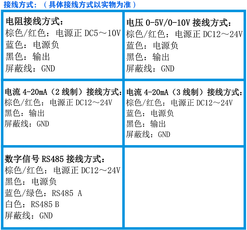 电阻输出型(电位器):5kΩ,10KΩ,