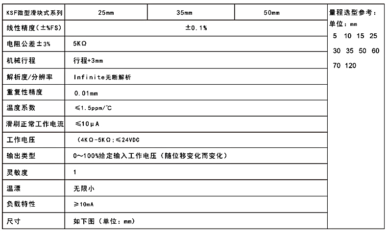 KSF智能阀门专用直线位置传感器参数����� �������Ƴ������������ �������Ƴ����������� �������Ƴ������������ �������Ƴ�������: