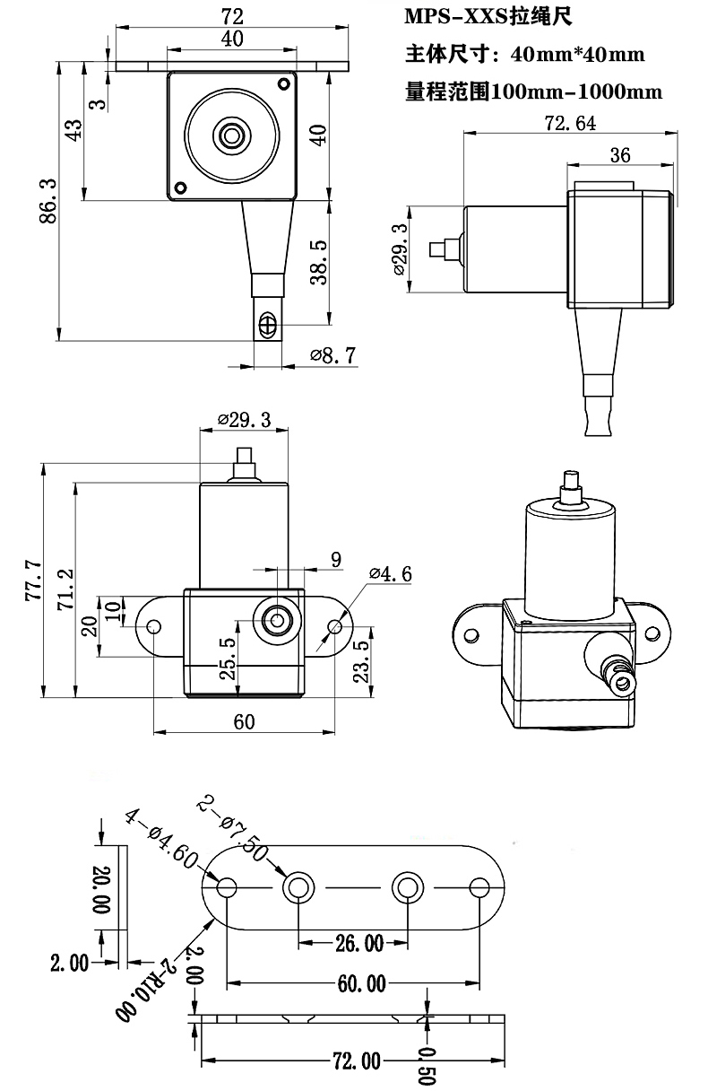 MBA-MPS-XXS本安防����� �������Ƴ������������ �������Ƴ������������ �������Ƴ������������ �������Ƴ�������爆型拉绳位移传感器的安装尺寸与接线方式及本安防爆证书、实用新型证书
