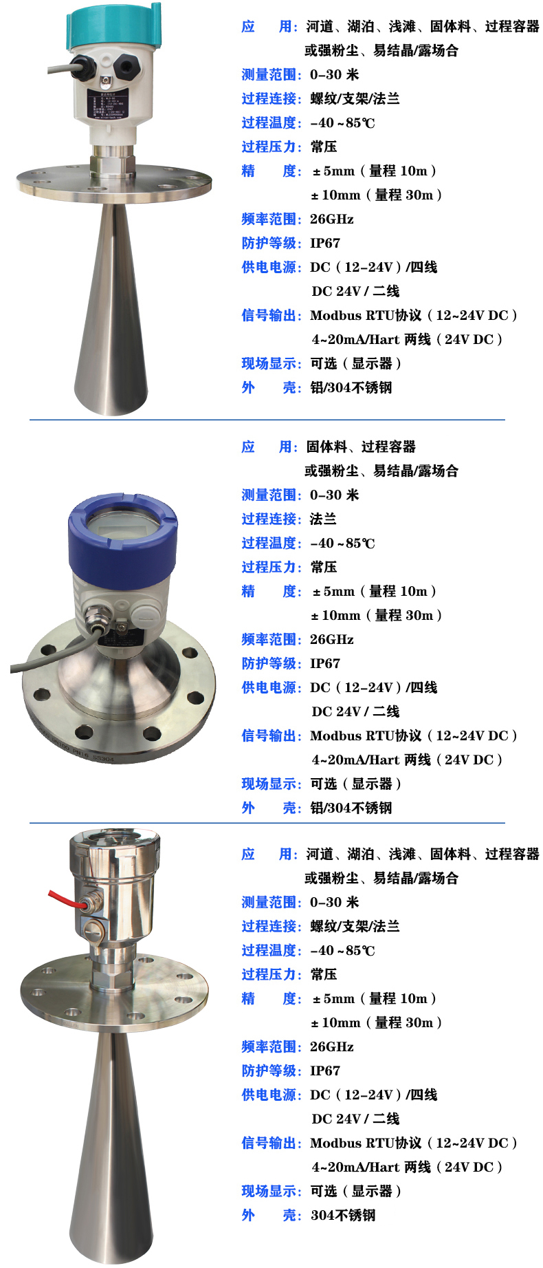 米朗科技MLD-30M系列传感器是26GHz高频雷����� �������Ƴ������������ �������Ƴ����������� �������Ƴ������������ �������Ƴ�������达式物位测量计,测量距离可达30米。天线被进一步����� �������Ƴ����������� �������Ƴ����������� �������Ƴ������������ �������Ƴ�������优化处理,新型快速的微处理器可以进行更高速率����� �������Ƴ������������ �������Ƴ������������ �������Ƴ������������ �������Ƴ�������的信号分析处理,雷达物位计可用于河道、湖泊����� �������Ƴ������������ �������Ƴ������������ �������Ƴ������������ �������Ƴ������、浅滩、固体料、过程����� �������� �������Ƴ����������� �������Ƴ������������ �������Ƴ������������ �������Ƴ�����������Ƴ�������容器或强粉尘、易结晶/露����� �������Ƴ������������ �������Ƴ������������ �������Ƴ������������ �������Ƴ�������场合反应釜等一些复杂的测量条件。雷达物位天线����� �������Ƴ������������ �������Ƴ������������ �������Ƴ������������ �������Ƴ�������发射较窄的微波脉冲,经天线向下传输。微波接触����� �������Ƴ������������ �������Ƴ������������ �������Ƴ������������ �������Ƴ�������到被测介质表面后被反射回来再次被天线系统接收����� �������Ƴ������������ �������Ƴ������������ �������Ƴ������������ �������Ƴ������,将信号传输给电子线路部分自动转换成物位信号����� �������Ƴ����������� �������Ƴ������������ �������Ƴ������������ �������Ƴ������(因为微波传播速度极快,电磁波到达目标并经反射返����� �������Ƴ������������ �������Ƴ������������ �������Ƴ������������ �������Ƴ�������回接收器这一来回所用的时间几乎是瞬间的)。