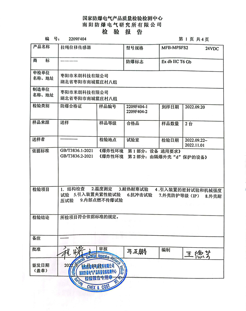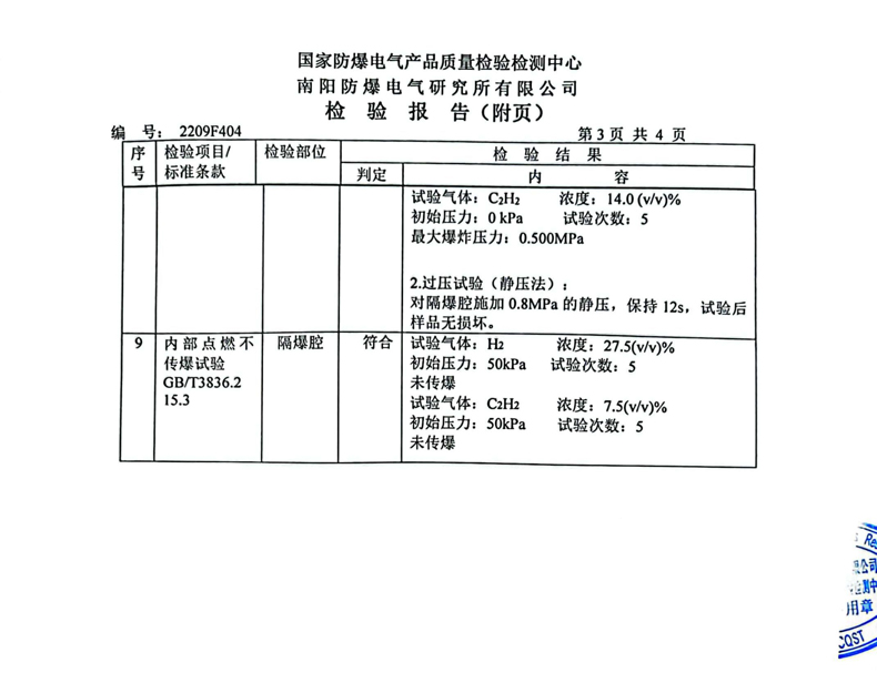 经对上述产品图样及技术文件的审查和样����� �������Ƴ������������ �������Ƴ������������ �������Ƴ������������ �������Ƴ�������品检验,确认符合下列标准:����� �������Ƴ����������� �������Ƴ������������ �������Ƴ������������ �������Ƴ�������GB/T3836.1- 2021《爆����� �������Ƴ������������ �������Ƴ������������ �������Ƴ����������� �������Ƴ�������炸性环境第1部分����� �������Ƴ����� �������Ƴ������������ �������Ƴ������������ �������Ƴ������������ �������Ƴ�������������:设备通用����� �������Ƴ������������ �������Ƴ������������ �������Ƴ����������� �������Ƴ�������要求》,GB/T3836.2- ����� �������Ƴ����������� �������Ƴ����������� �������Ƴ������������ �������Ƴ�������-2021《爆炸性环境 第2部分:����� �������Ƴ������������ �������Ƴ������������ �������Ƴ������������ �������Ƴ�������由隔爆外壳"d"保护的设备》。