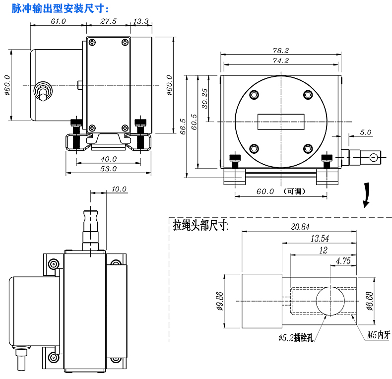 四、LPS-S拉线式位移传感器安����� �������Ƴ������������ �������Ƴ������������ �������Ƴ������������ �������Ƴ������装尺寸: