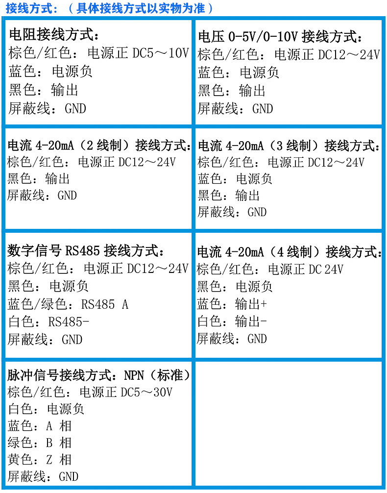电流输出型:4-20mA(2线制/3线制/4线制)
