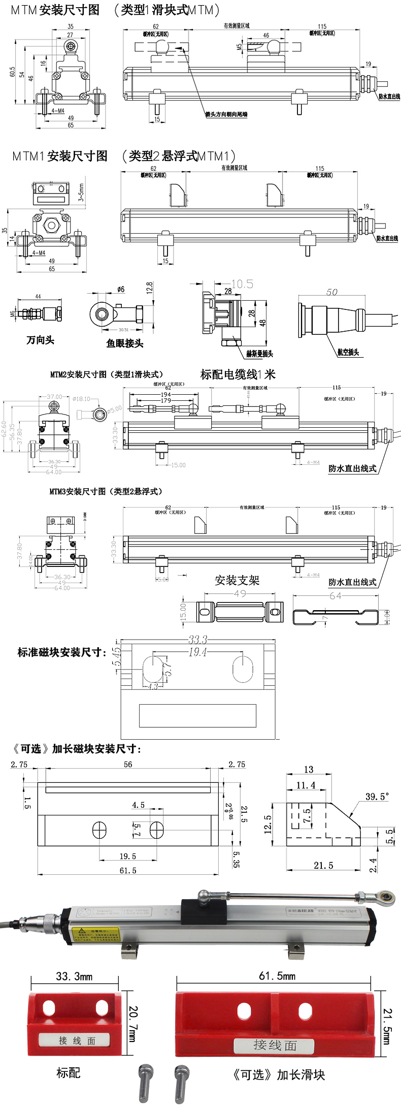 MTM低功耗导轨滑块式磁致伸缩位移传感器安装����� �������Ƴ������������ �������Ƴ������������ �������Ƴ������������ �������Ƴ�������尺寸: