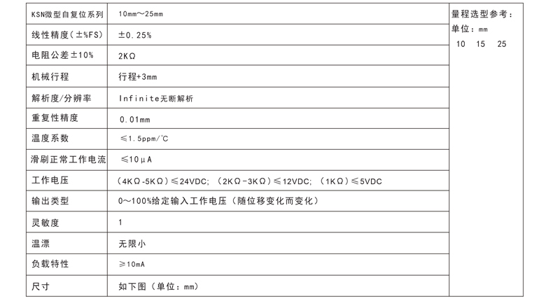 KSN自复位式位移传感器技术参数:
