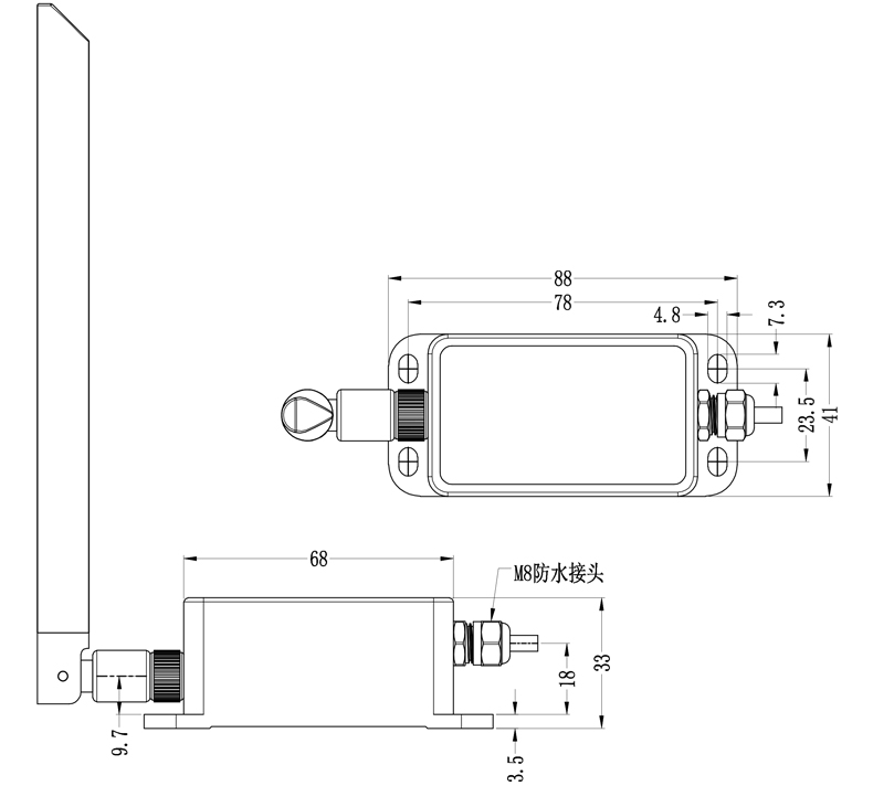 六、无线倾角传感器安装尺寸: