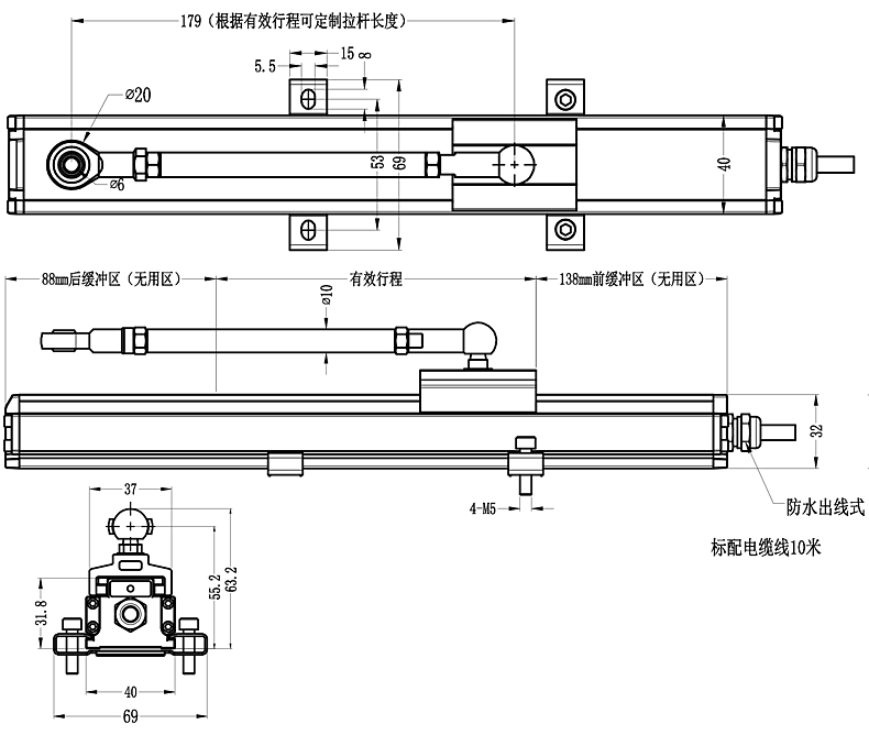 四、闸门开度滑块式(磁致伸缩)位移传感器����� �������Ƴ������������ �������Ƴ������������ �������Ƴ������������ �������Ƴ�������安装尺寸图: