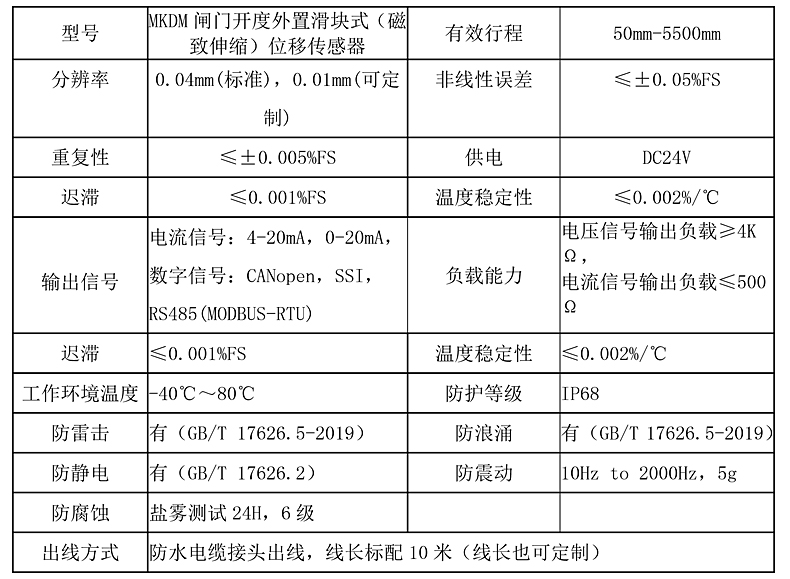二、闸门开度滑块式(磁致伸����� �������Ƴ������������ �������Ƴ������������ �������Ƴ������������ �������Ƴ�������缩)位移传感器标准参数: