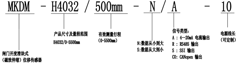 五、闸门开度滑块式(磁致伸缩)位移传感器����� �������Ƴ������������ �������Ƴ������������ �������Ƴ������������ �������Ƴ�������选型:
