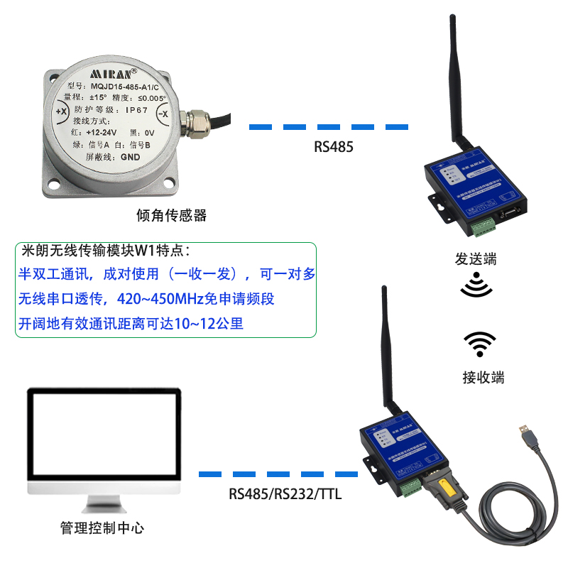 • 产品名称:无线传输模块与倾角传感器所远程连接
