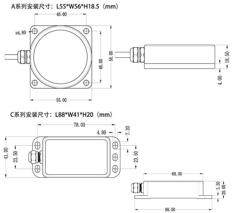 四、六轴(姿态)倾角(动态)传感器安装����� �������Ƴ������������ �������Ƴ������������ �������Ƴ����������� �������Ƴ�������尺寸:
